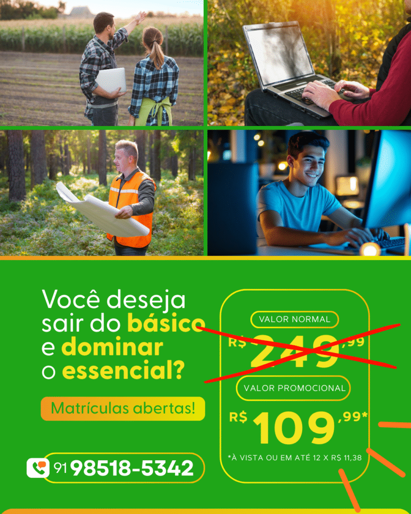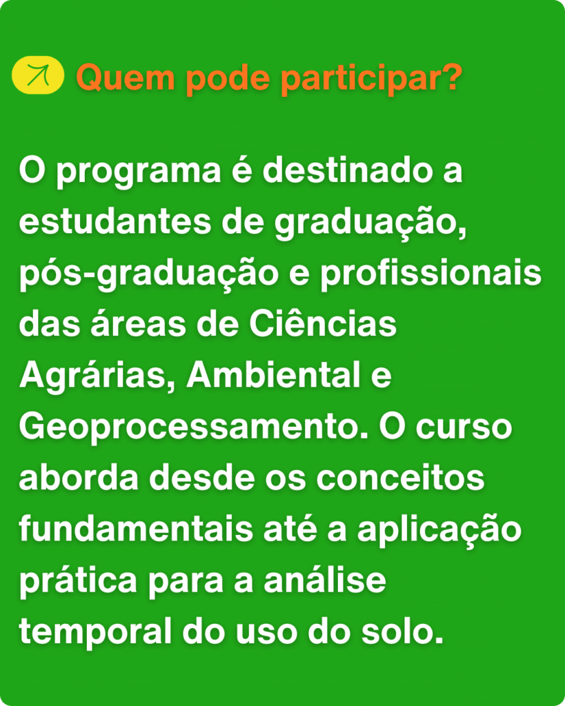 O foco do curso é a aplicabilidade imediata. Você aprenderá a transformar dados de satélite em mapas de Uso e Cobertura do Solo com rigor científico e qualidade visual com rigor científico e qualidade visual, prontos para apoiar decisões em projetos agrícolas e ambientais